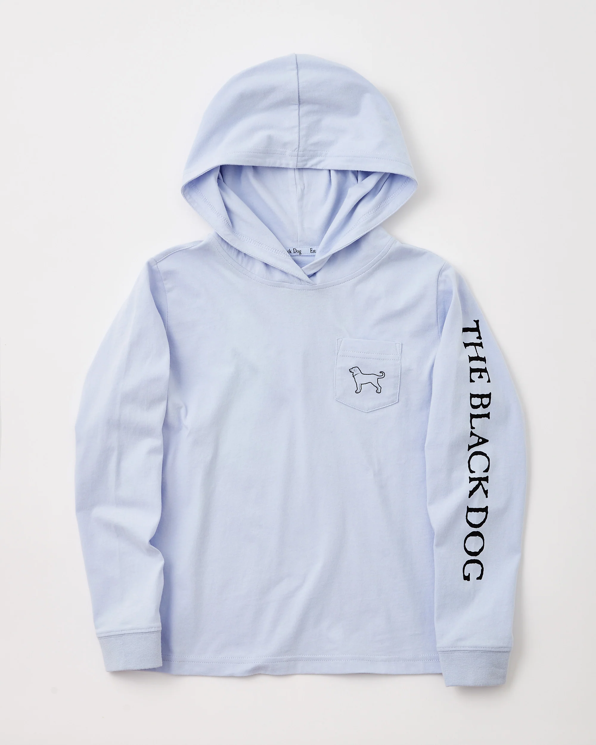Let your kiddos feel extra cool in this Kids Cadet Hoodie! Made from ringspun combed cotton, this lightweight lognsleeve hooded tee is a fun, casual way to keep comfy. Outline dog print on back, logo on chest pocket and sleeve. Classic fit. Imported.