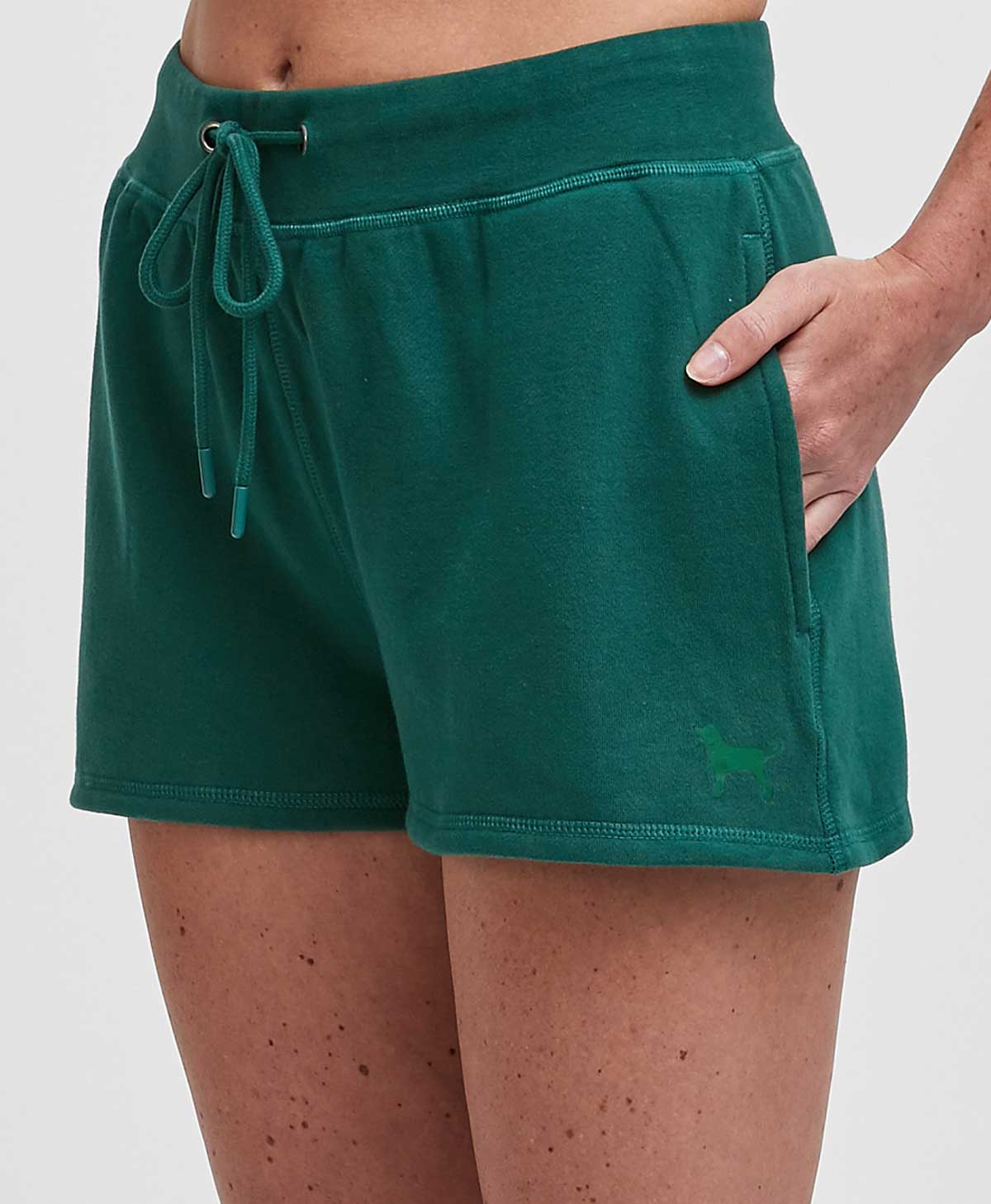 The Ladies Bluffs Garment Dye Shorts feature a classic fit and are made from a blend of 80% cotton and 20% polyester fleece, ensuring comfort and lasting wear. They come with a rib knit cuff and waistband for added coziness, and a drawcord waistband with metal eyelets and a rounded plastic tip for durability. The signature Dog Logo is subtly printed on the left hem in a matching shade, combining style with a practical touch.
