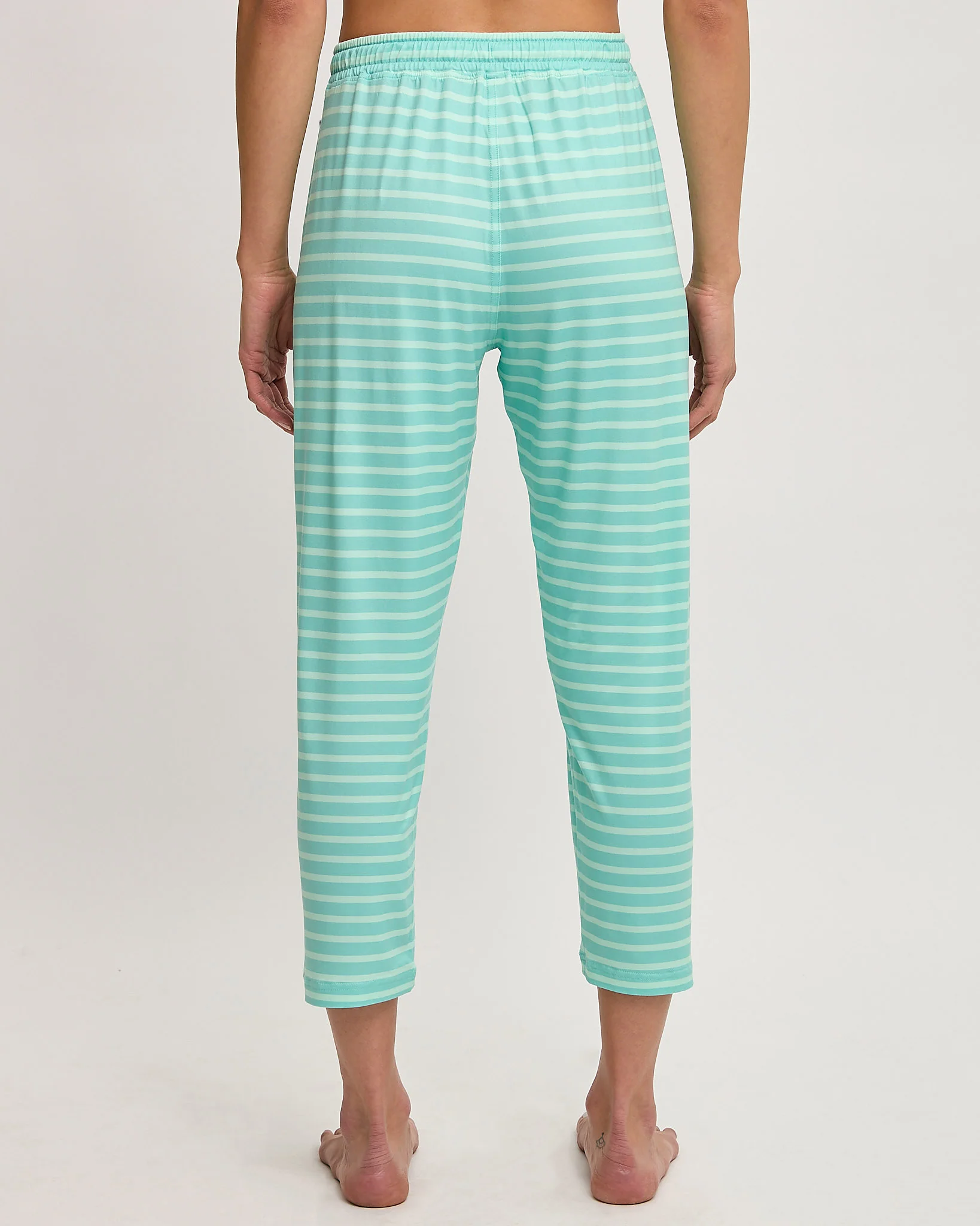 These Ladies Solid Lounge Capri pants will be your "go-to" post beach pants! Super soft, made of Lounge Jersey with a hidden drawcord waistband and 1" side slits at the hem, they also feature a subtle black dog tag sewn into the left upper side seam. Versatile for grabbing a coffee in town or throwing in your beach bag.